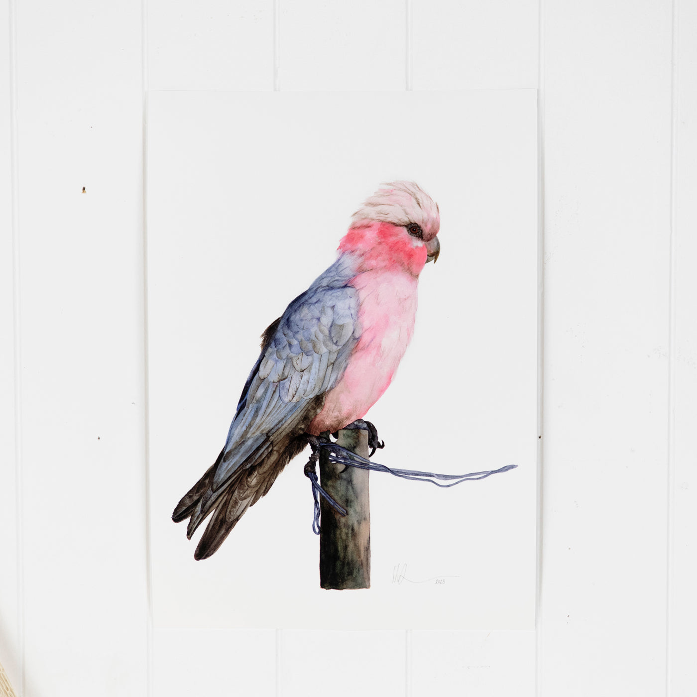 This fine art illustration of a Galah named Gladys has been created by award winning Yeppoon based watercolour artist Michelle Turner.