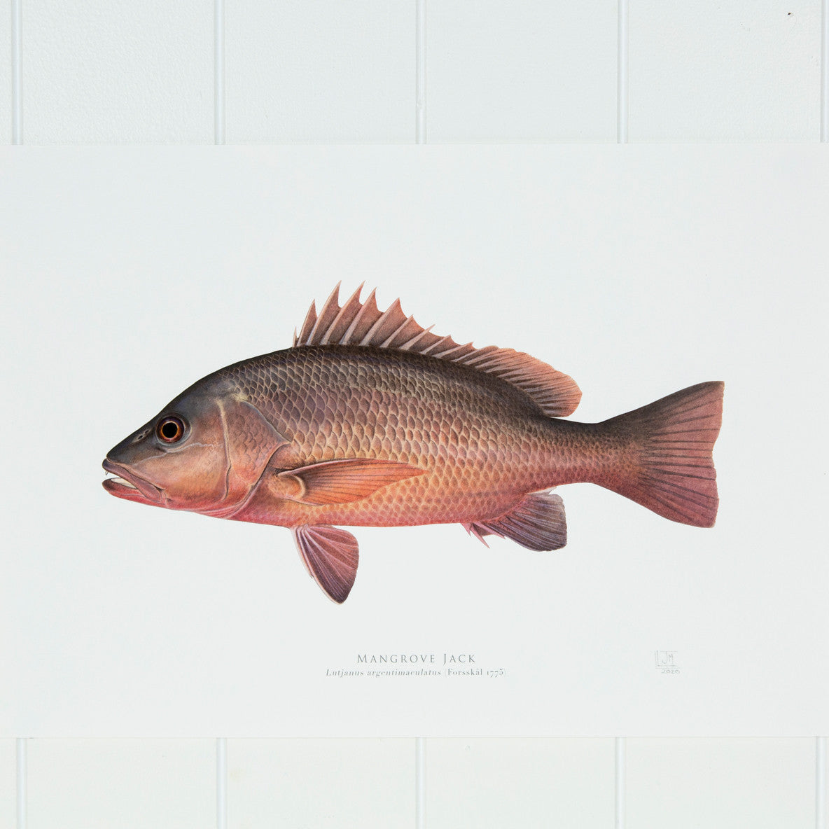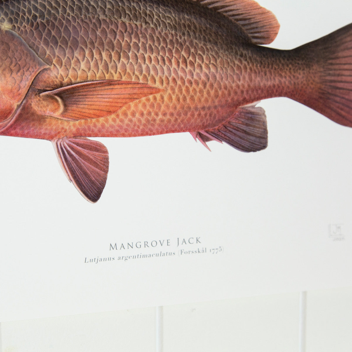 This stunning fine art illustration of a Mangrove Jack has been created by Dr Lindsay Marshall, a fisheries biologist and natural history artist based here on the Sunshine Coast.