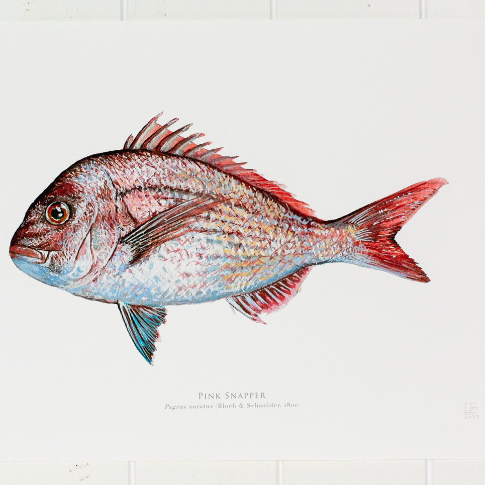 This stunning fine art illustration of a Pink Snapper has been created by Dr Lindsay Marshall, a fisheries biologist and natural history artist based here on the Sunshine Coast.