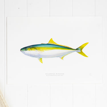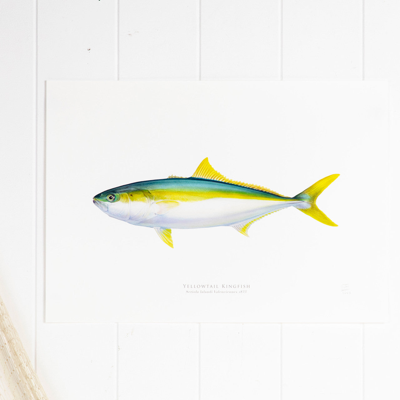 This stunning fine art illustration of a Yellowtail Kingfish has been created by Dr Lindsay Marshall, a fisheries biologist and natural history artist based here on the Sunshine Coast.