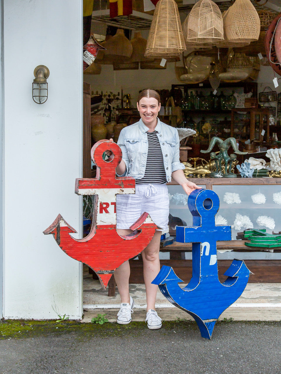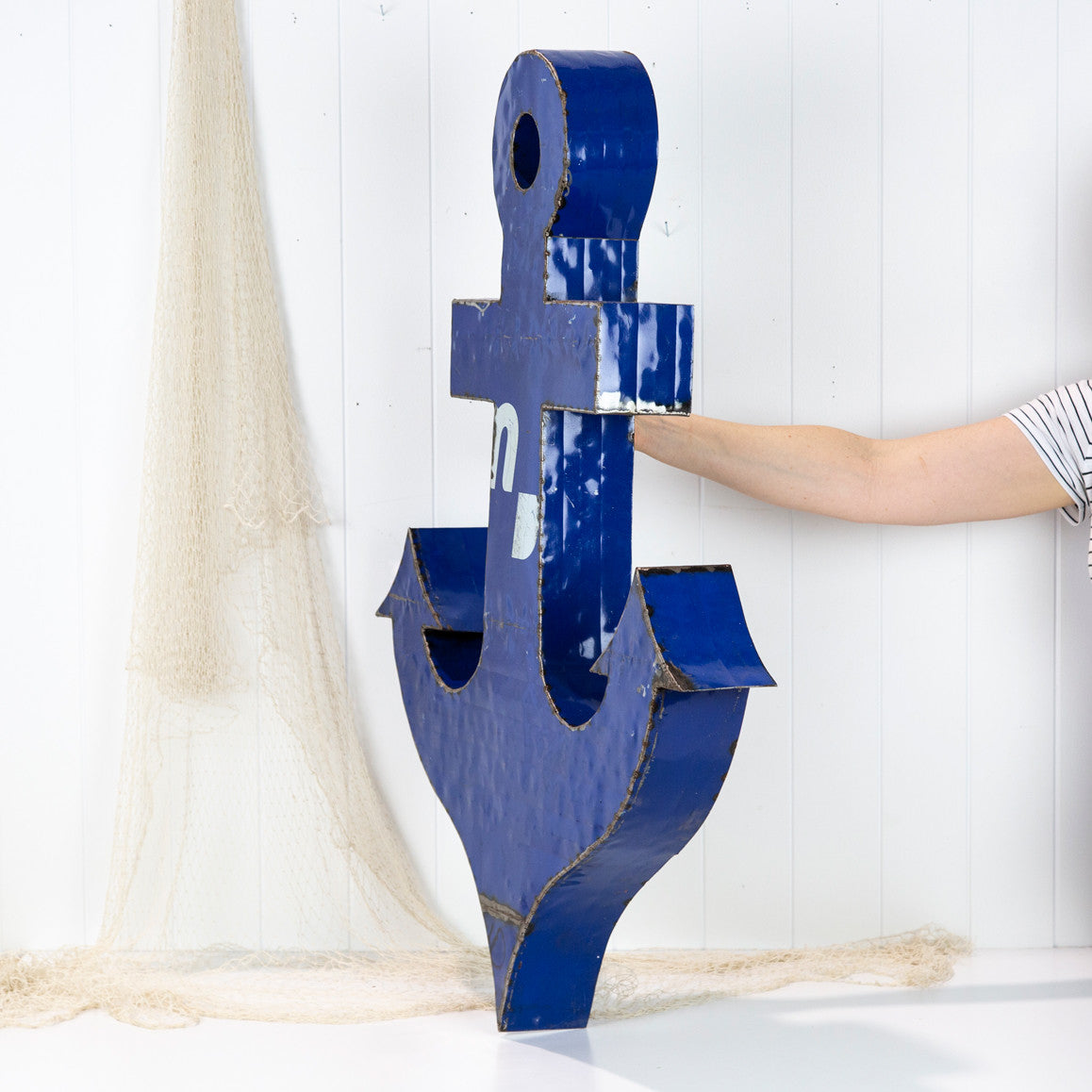 These large metal anchor has been custom made, cleverly crafted by re purposing old metal drums.