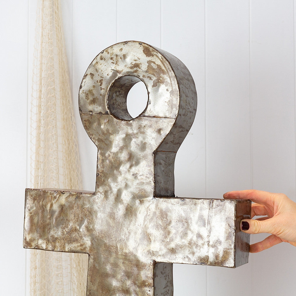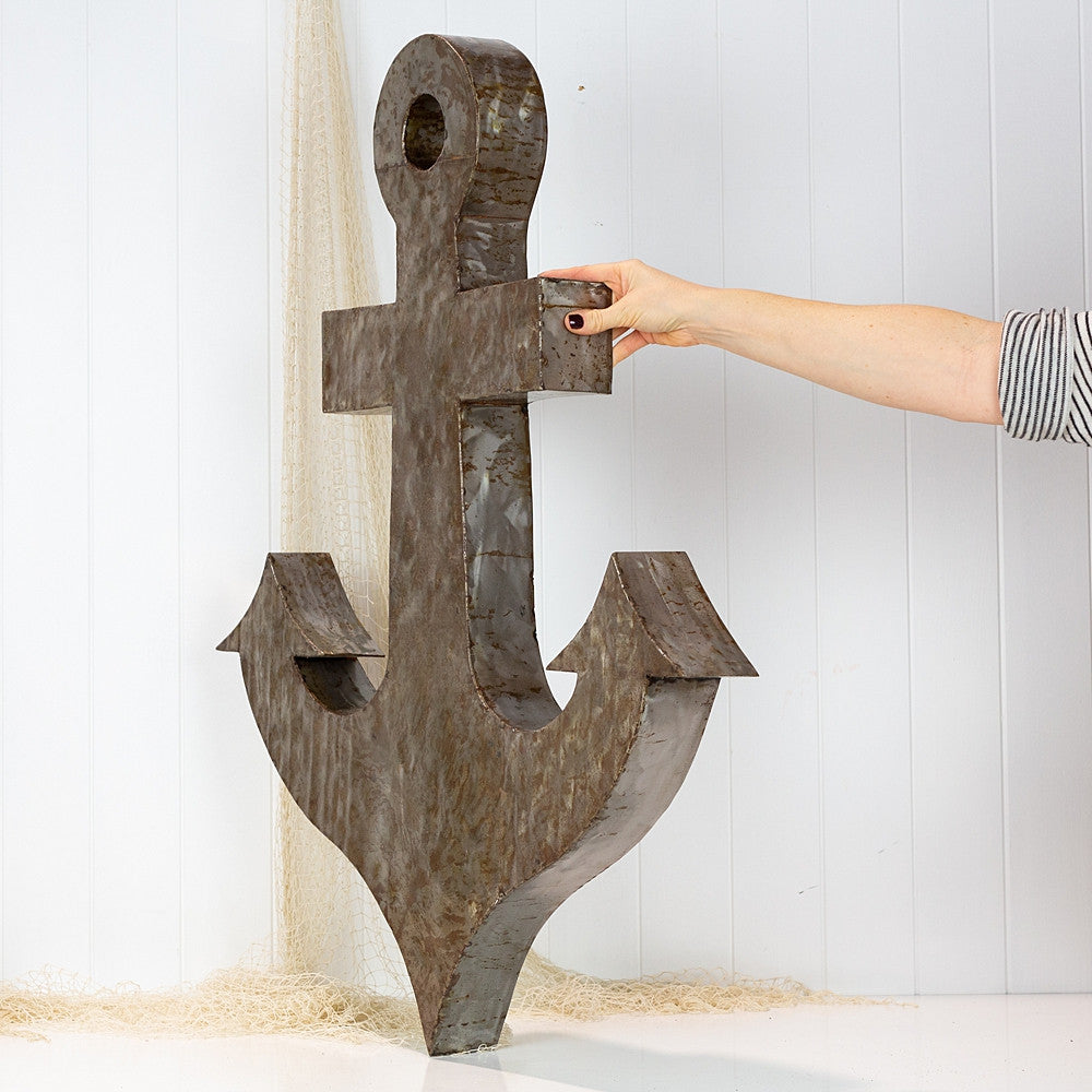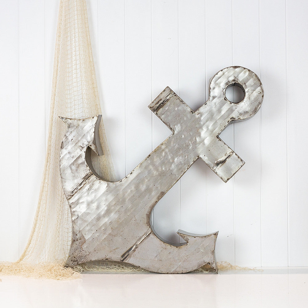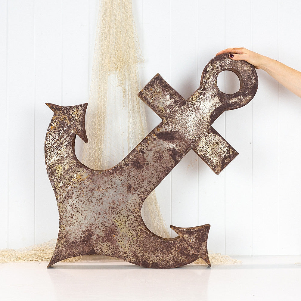 These large metal anchor has been custom made, cleverly crafted by re purposing old metal drums.
