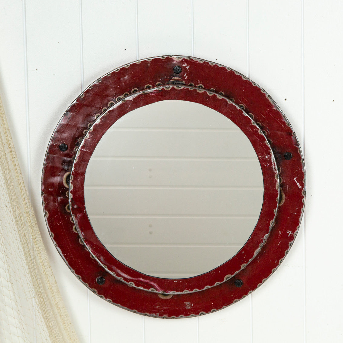 These porthole style mirrors have been custom made from repurposed metal drums.
