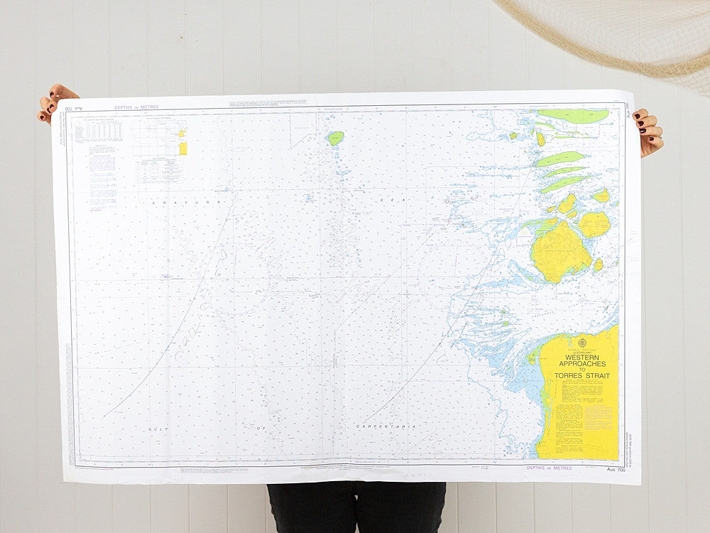 This chart/map is covers the Western Approaches to Torres Strait. A small section of the Queensland coastline can be seen.