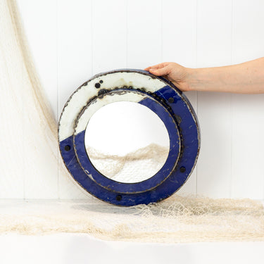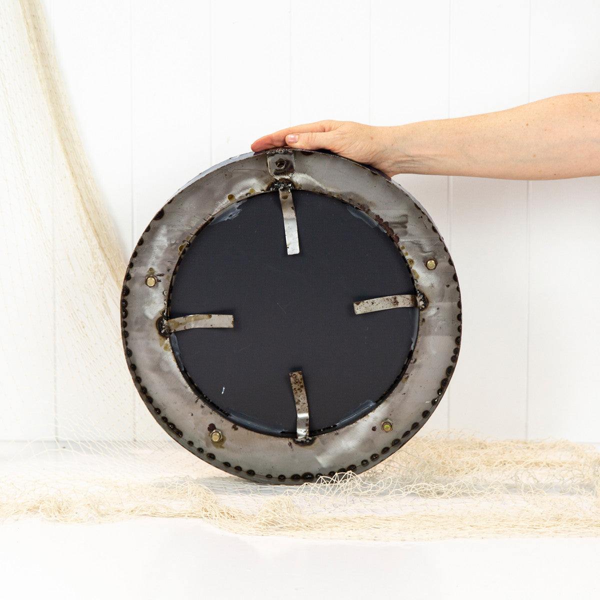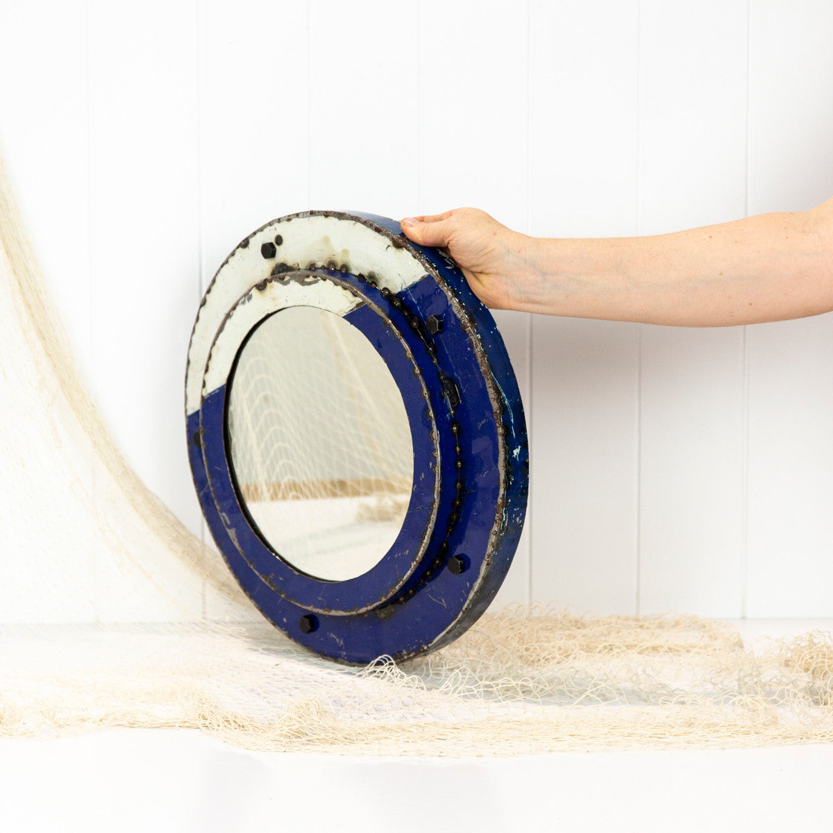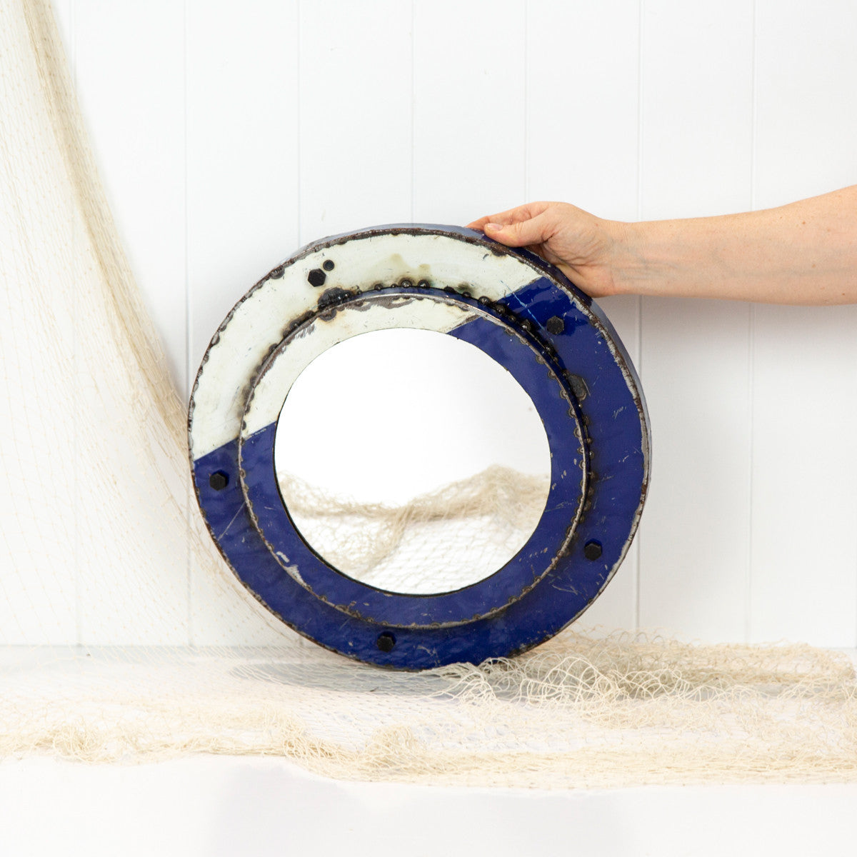 These porthole style mirrors have been custom made from repurposed metal drums.
