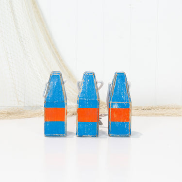This reproduction wooden buoy has been made to resemble a lobster pot buoy.