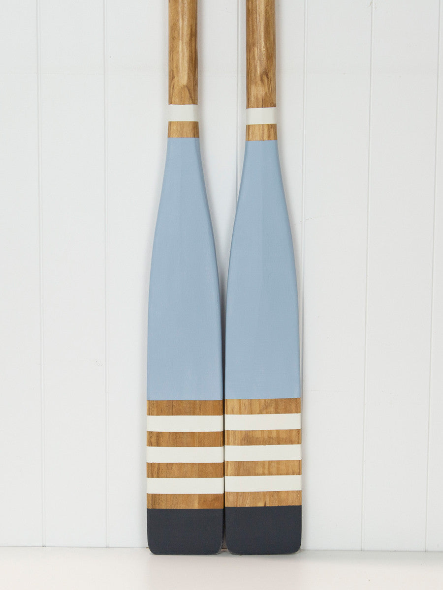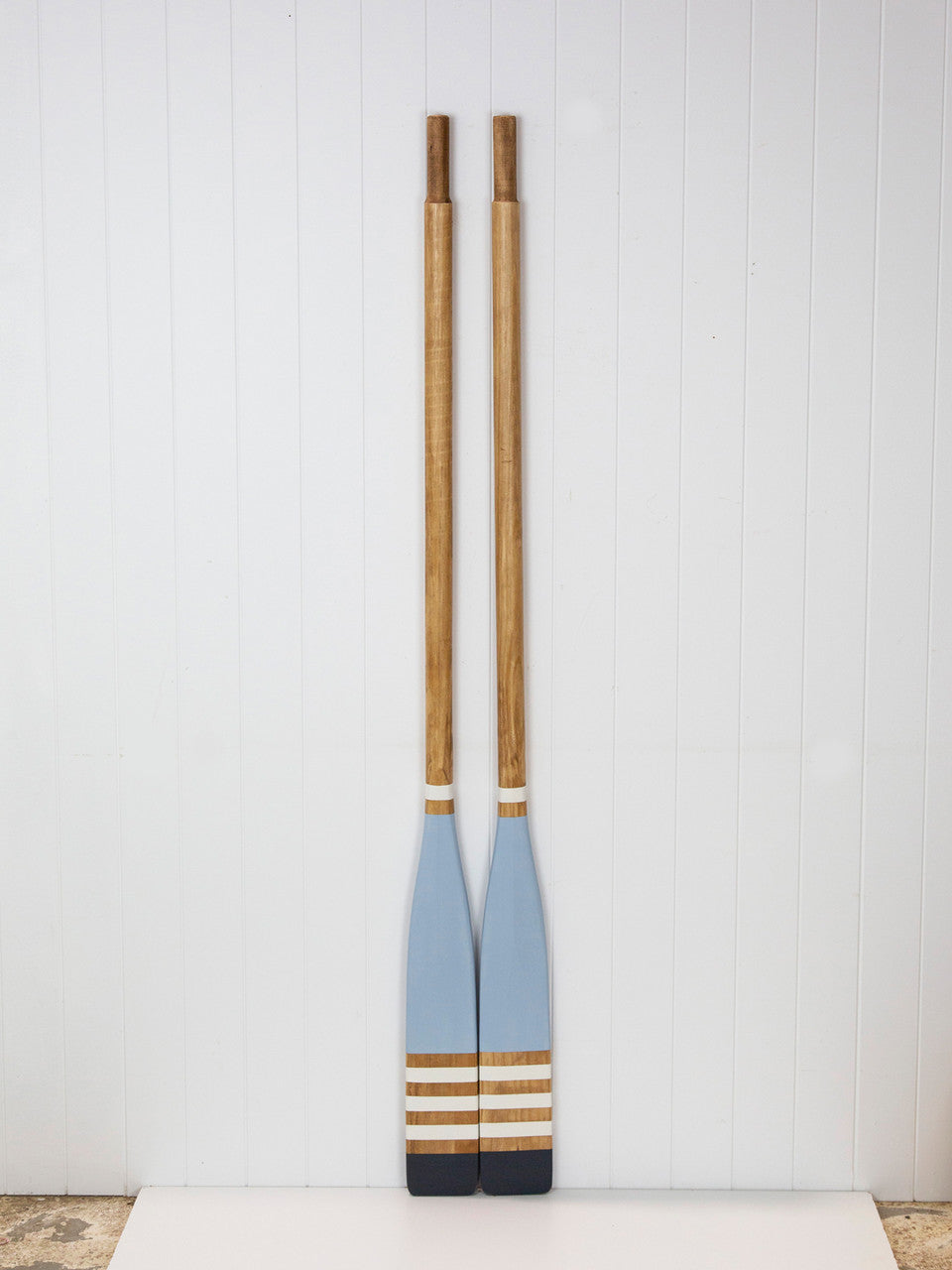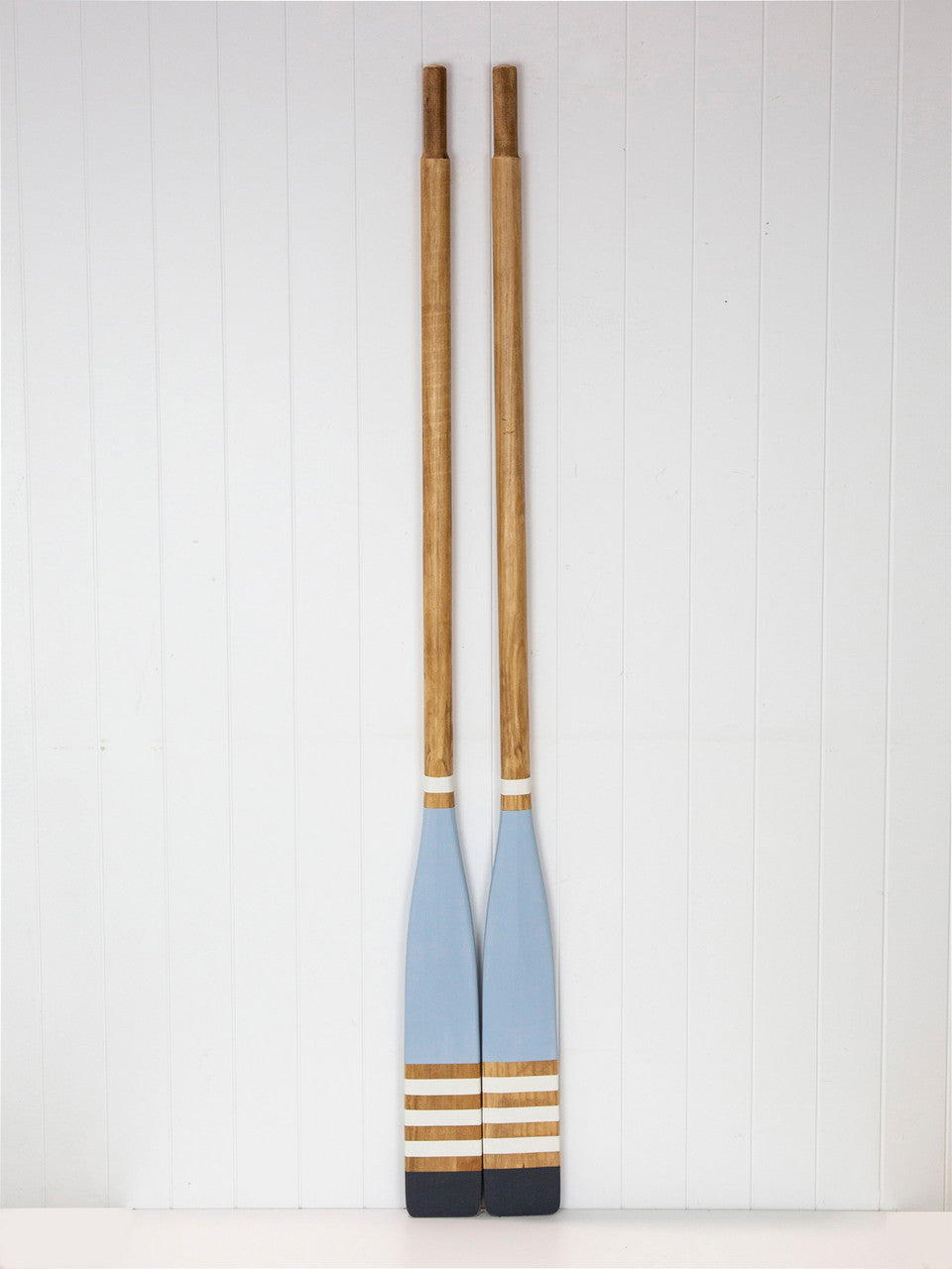 These oars have been crafted from natural timber and then hand painted, so there may be slight variations in size, wood grain and detail from the pair photographed.