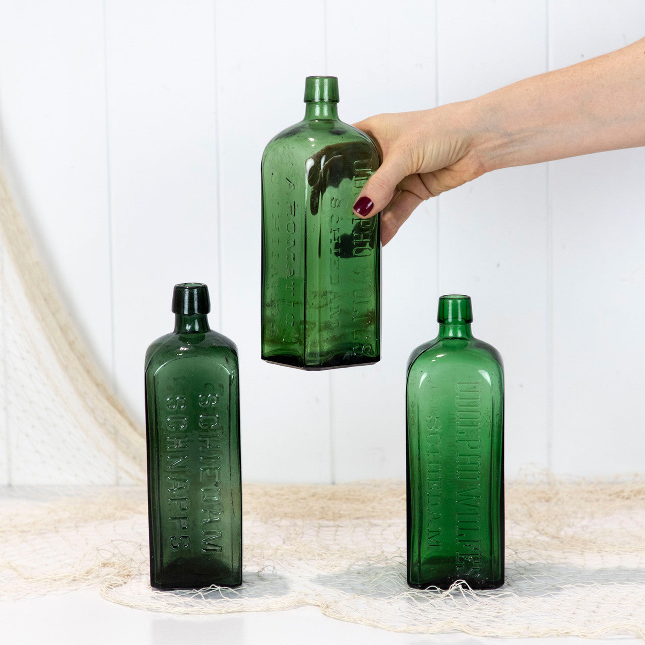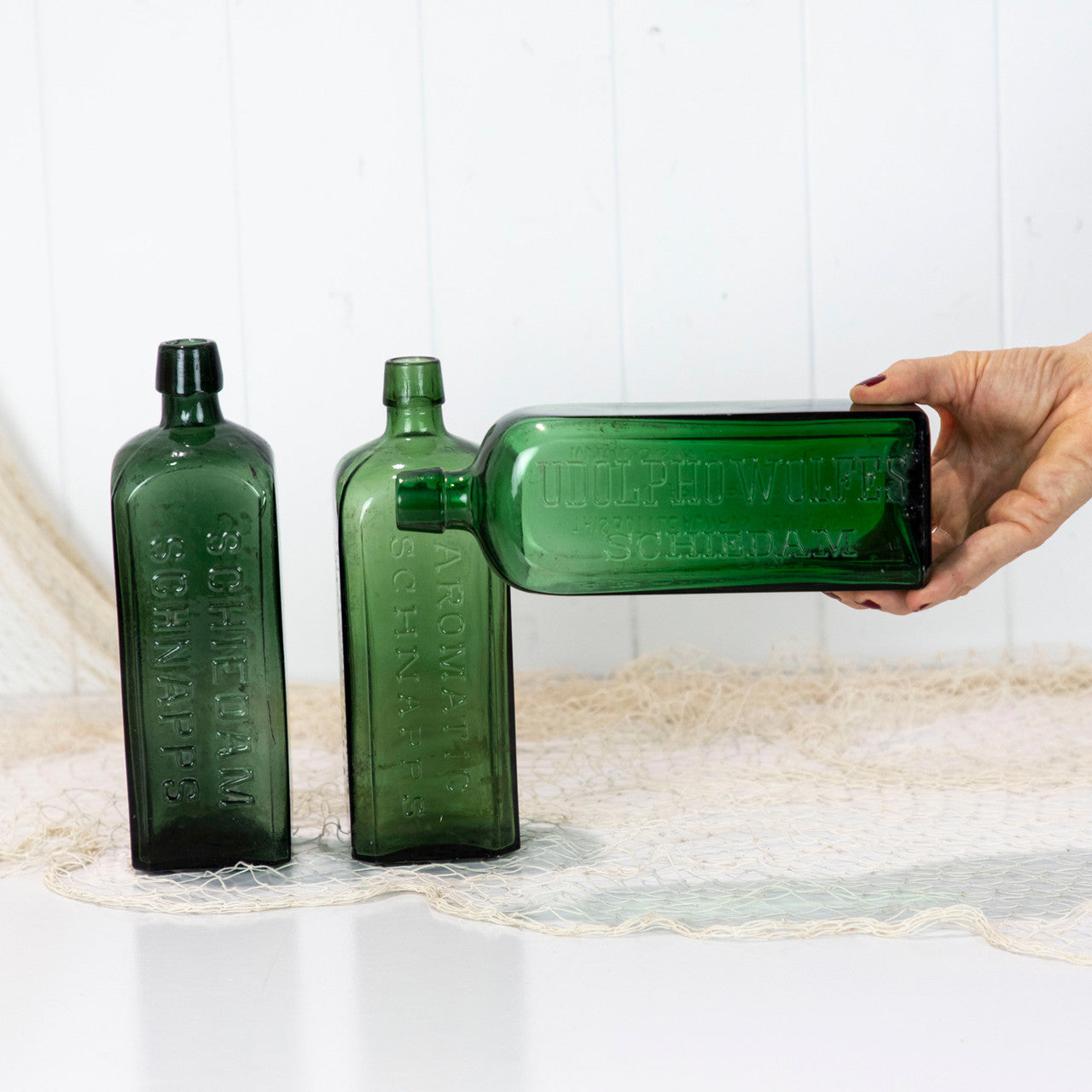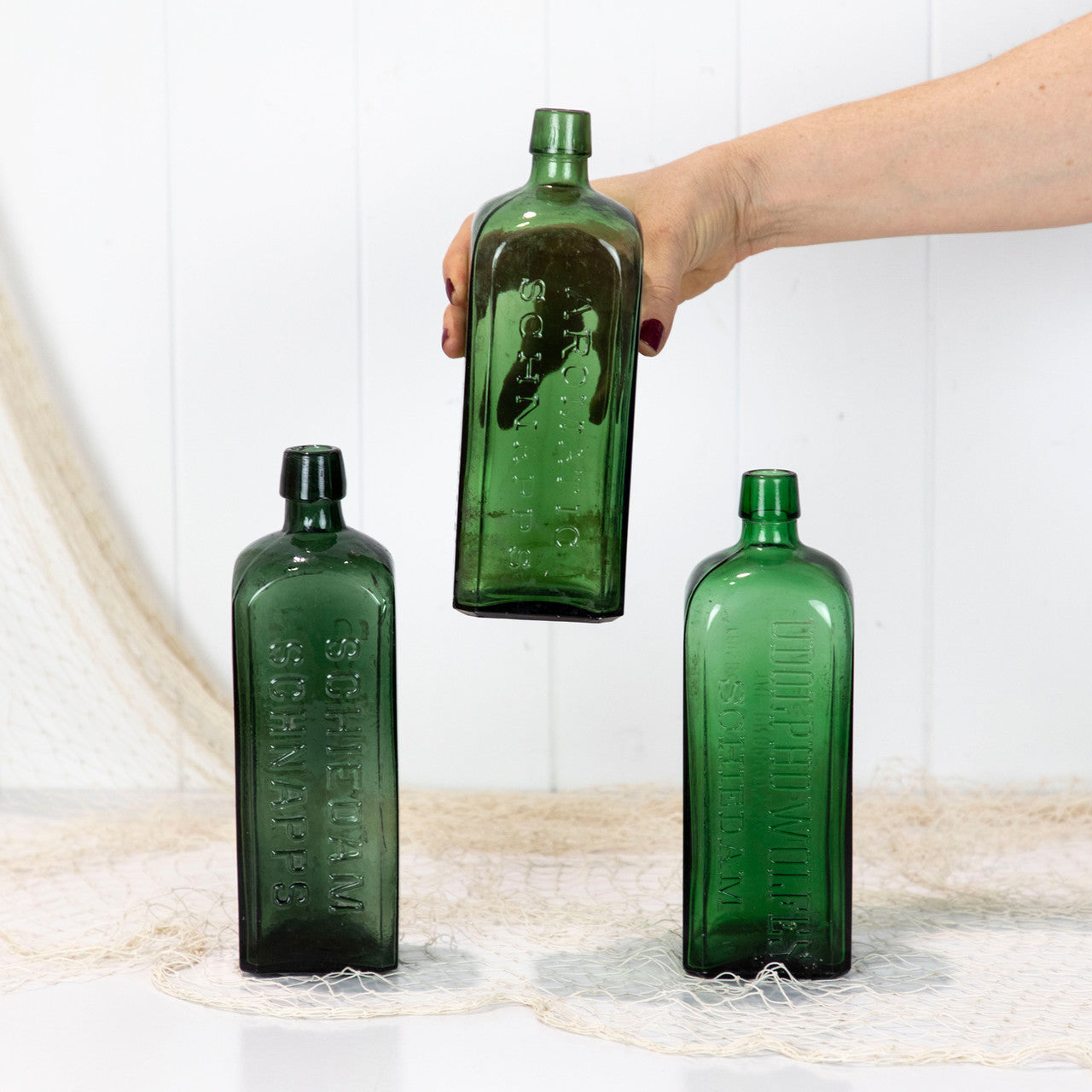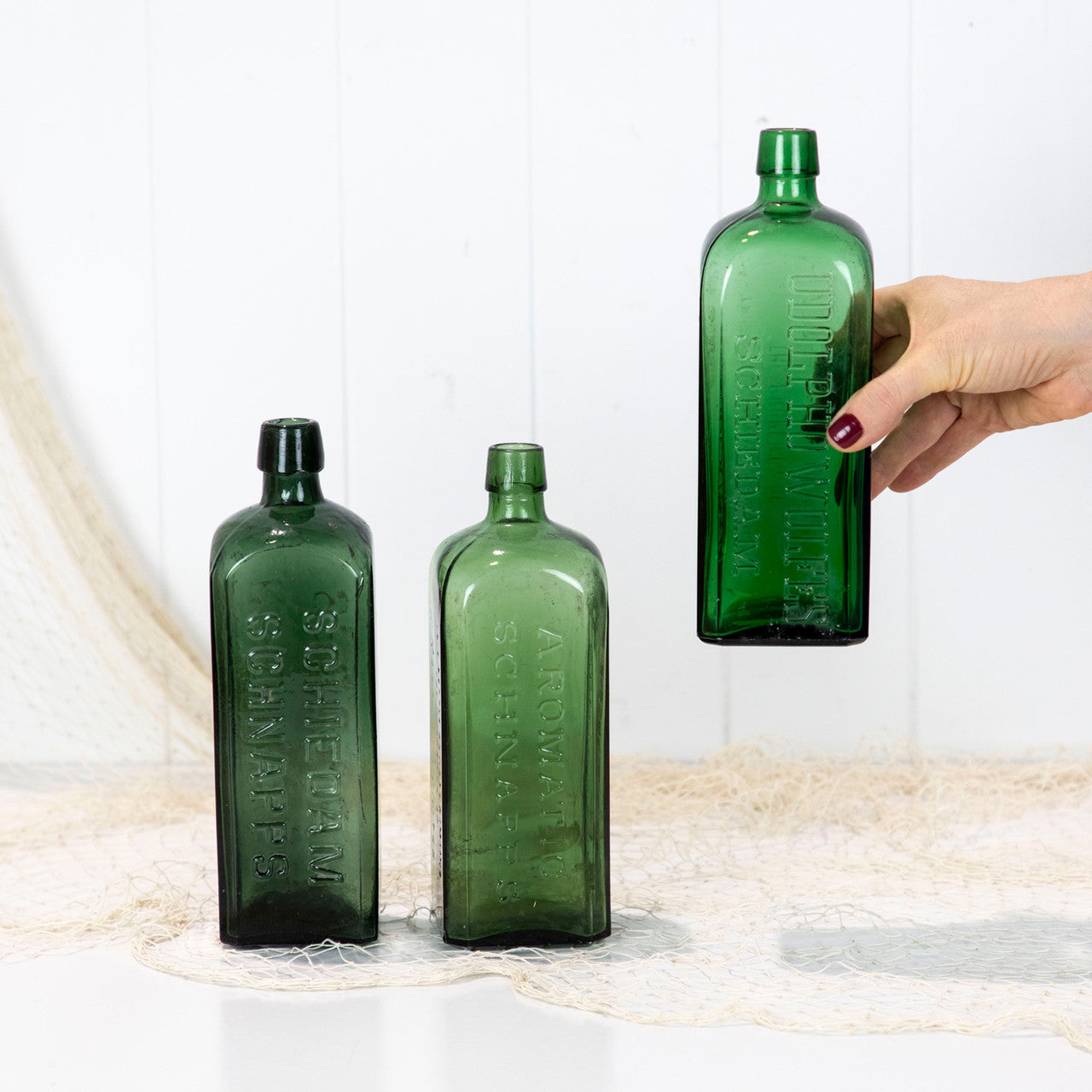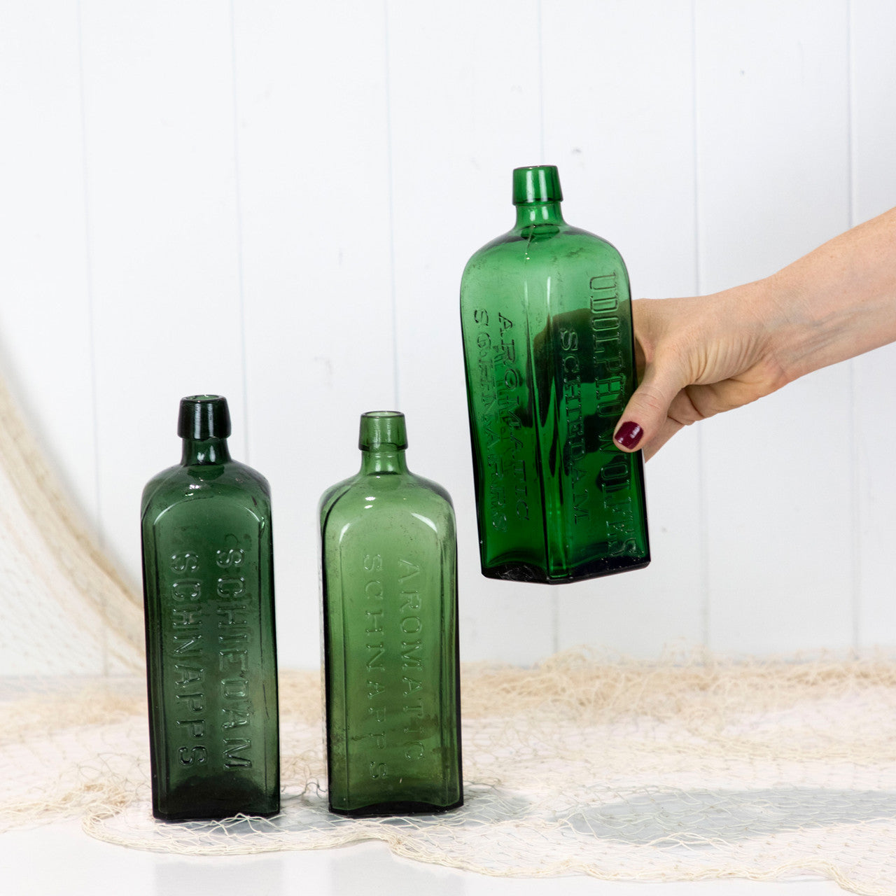 This stunning green bottles once held schnapps.