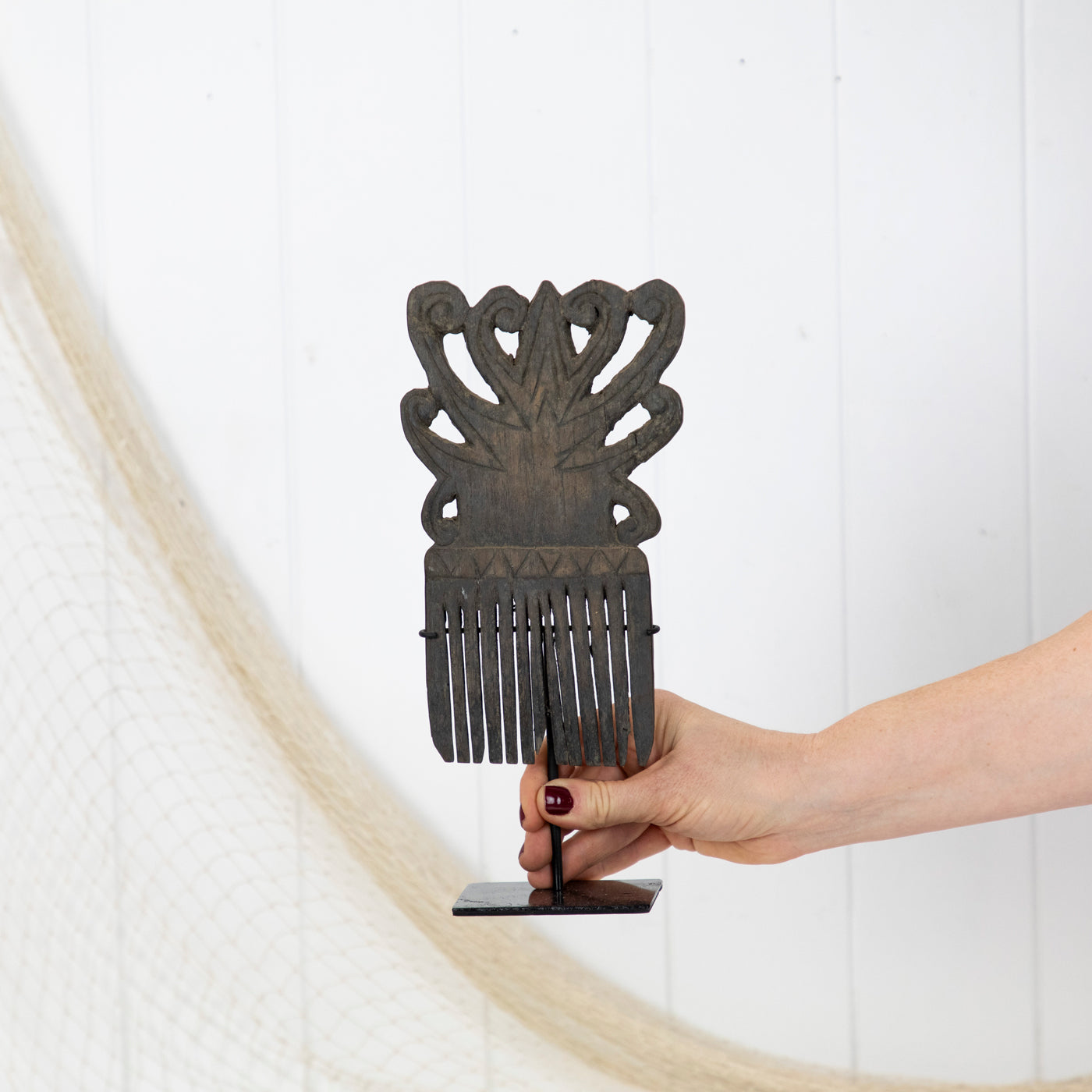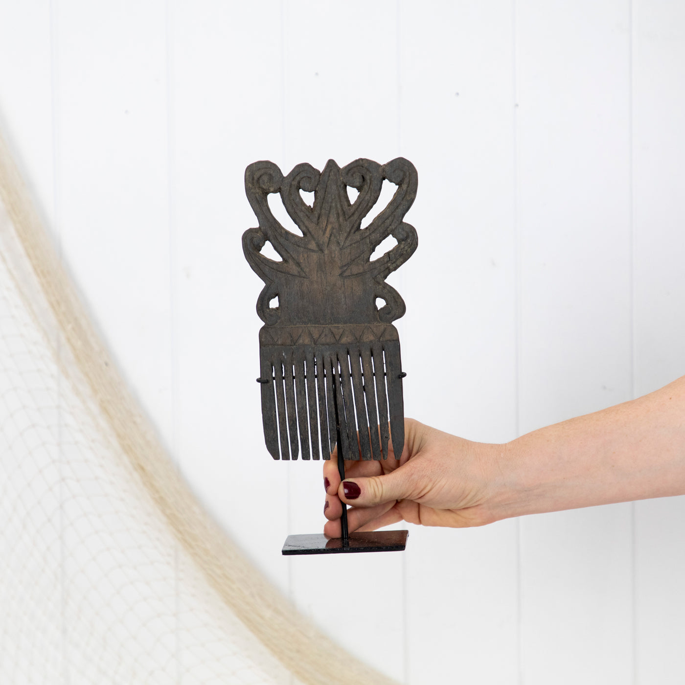 This intricate carved comb is an antique from the Indonesian Islands.