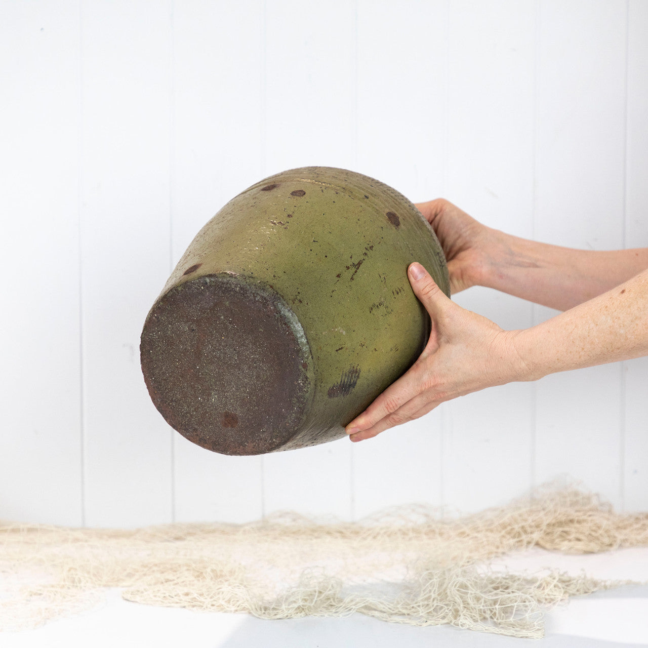 Made of clay it has wonderful texture and an earthy green colour.