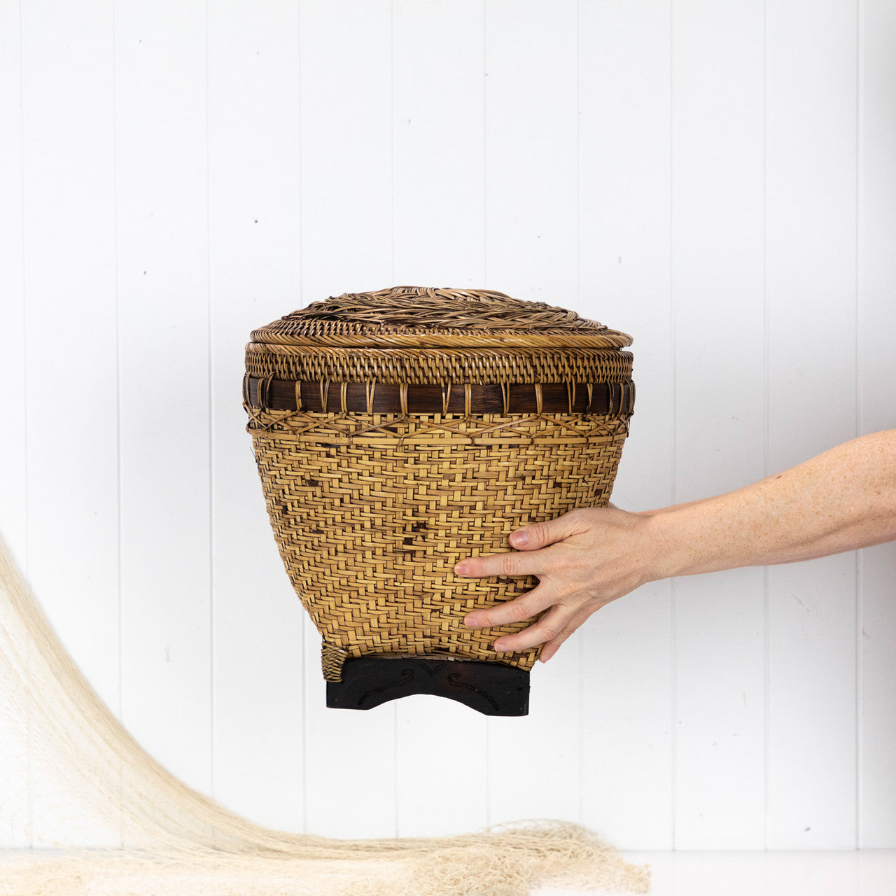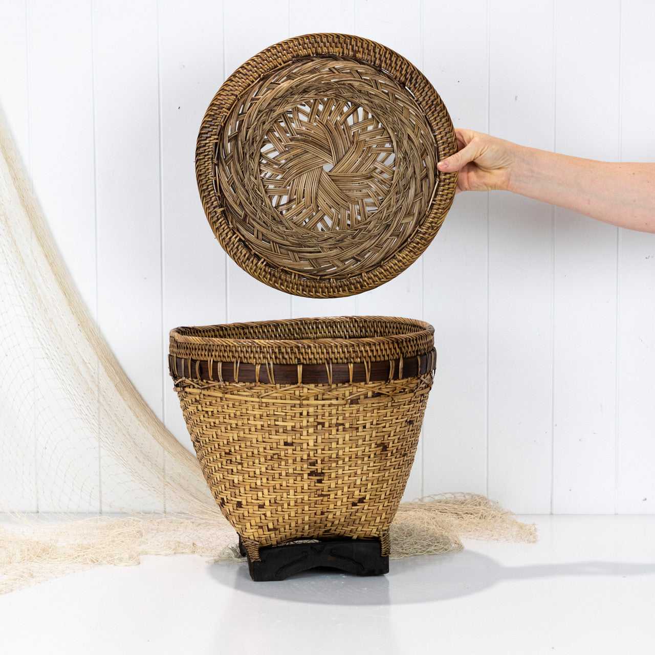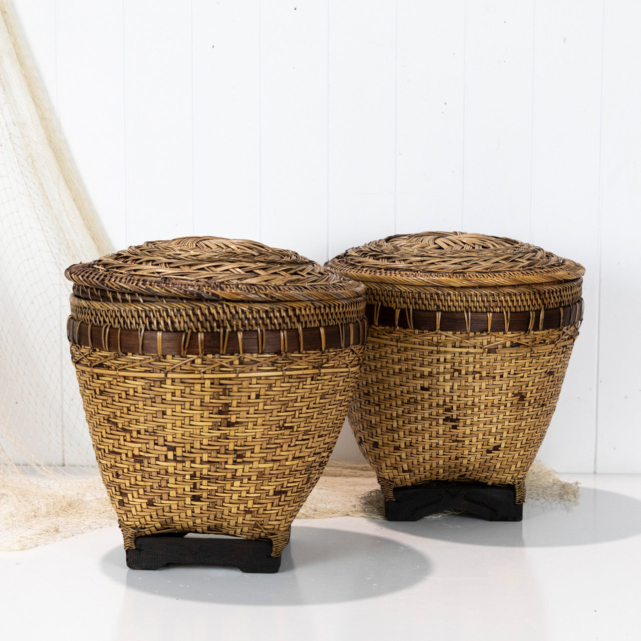 These high-quality rattan baskets with beautiful details have been handmade in Indonesia.