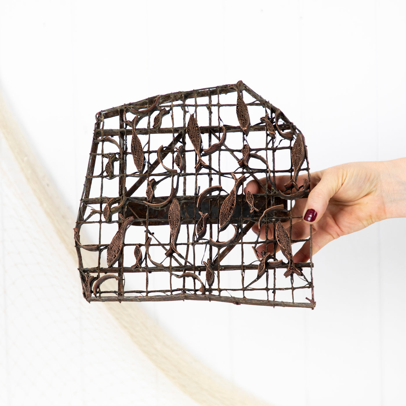 This intricate copper stamp is antique and was used in the production of batik fabrics.