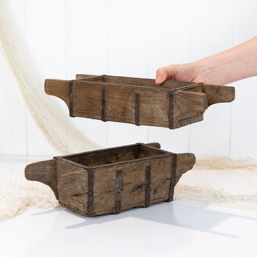 These gorgeous wooden boxes are actually a brick moulds and were used to shape clay or mud into blocks!