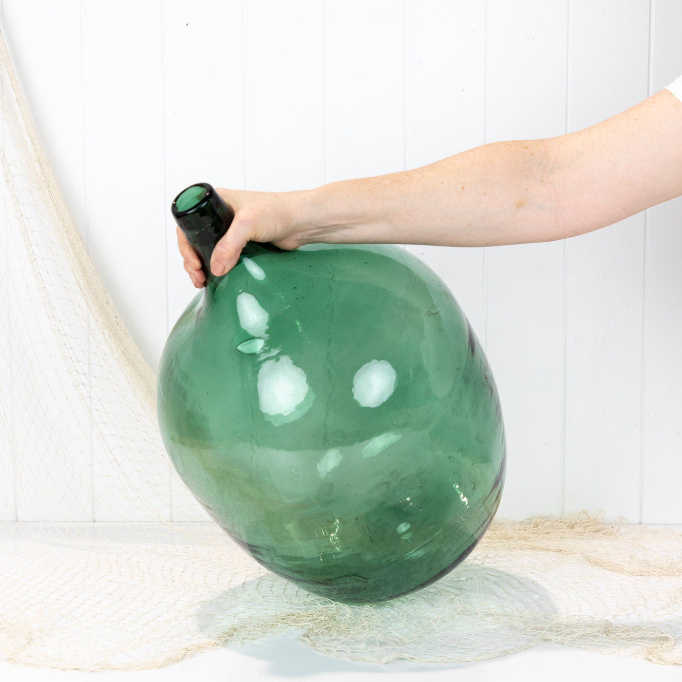 This wonderful old demijohn is made from vibrant sea blue glass.