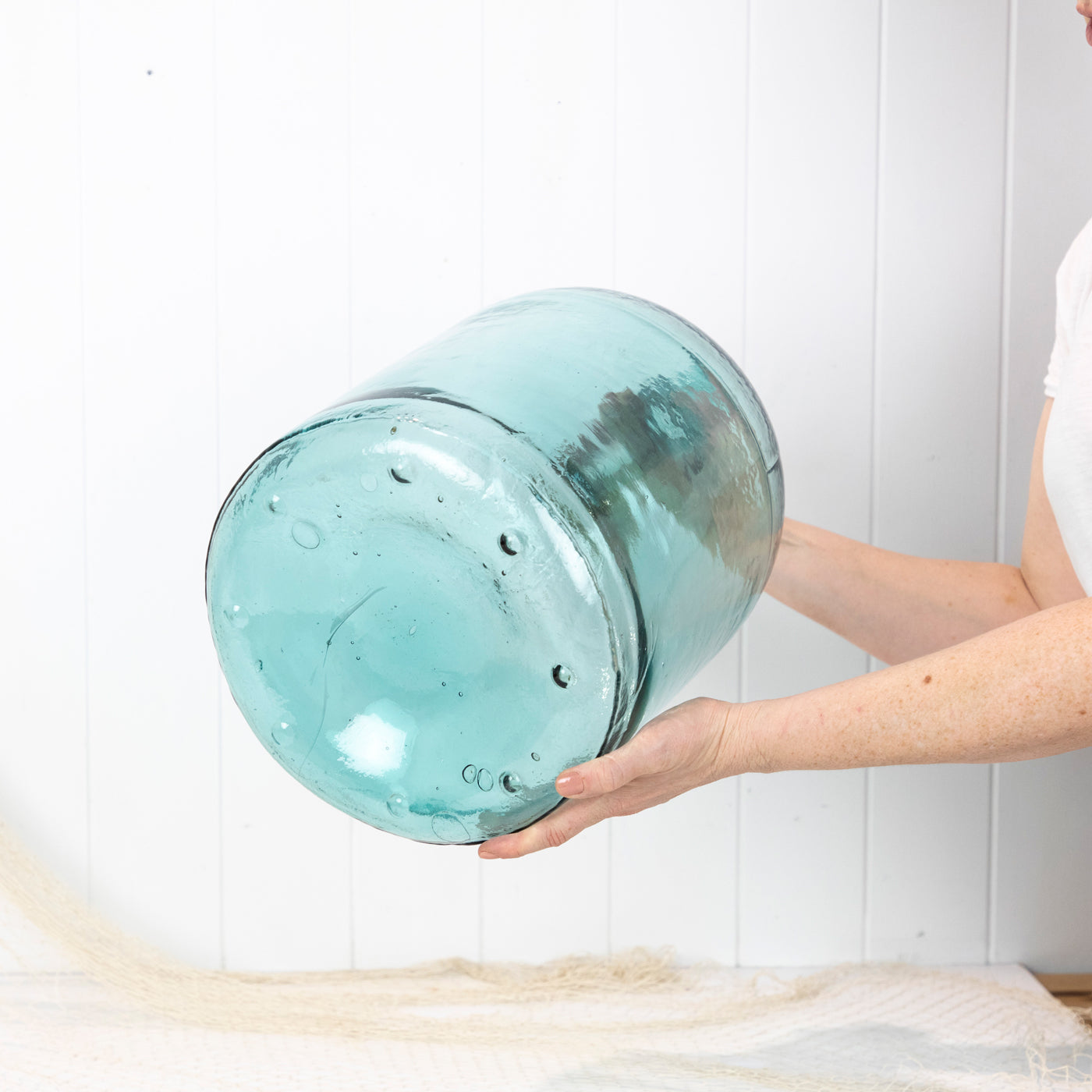 This wonderful old demijohn is made from vibrant sea blue glass.