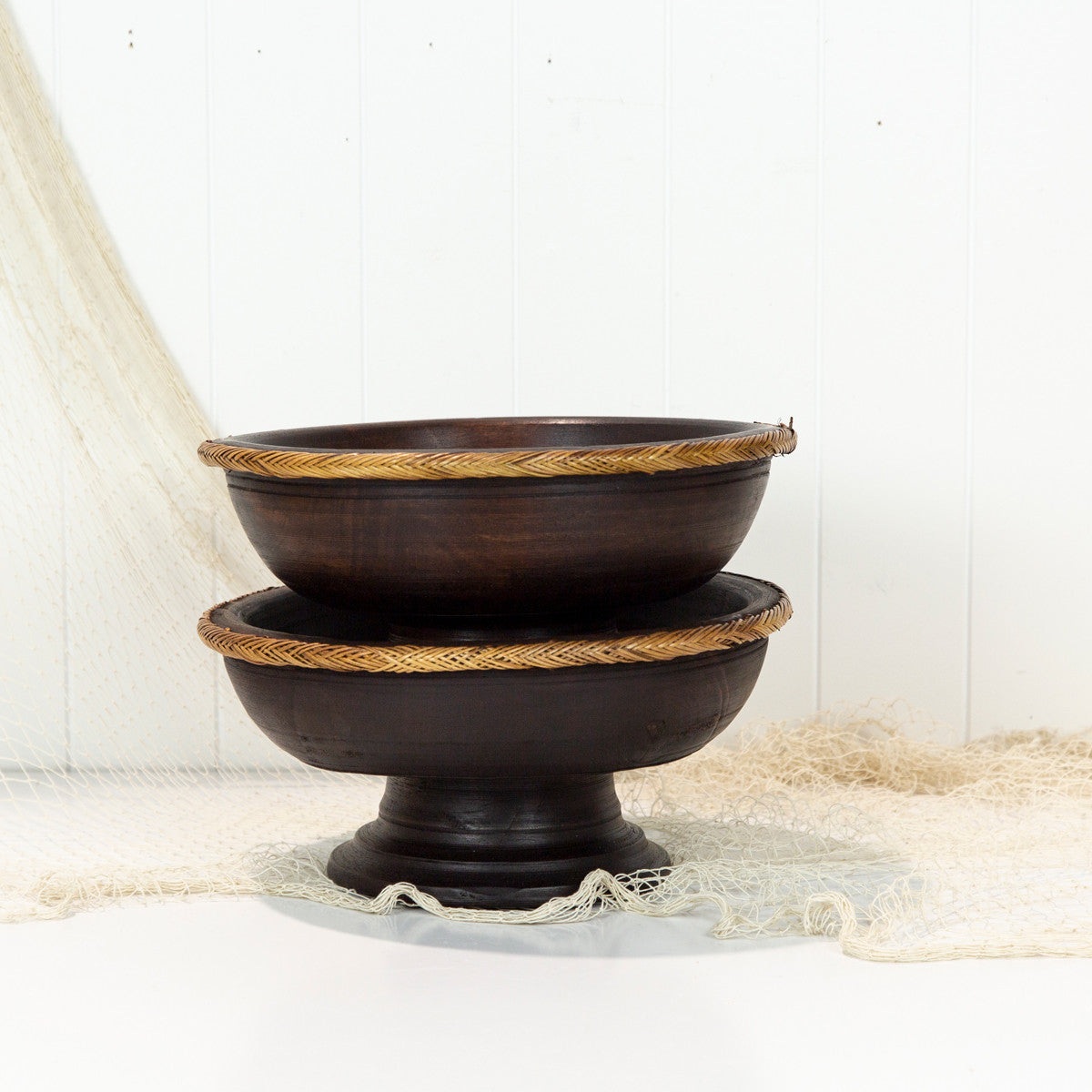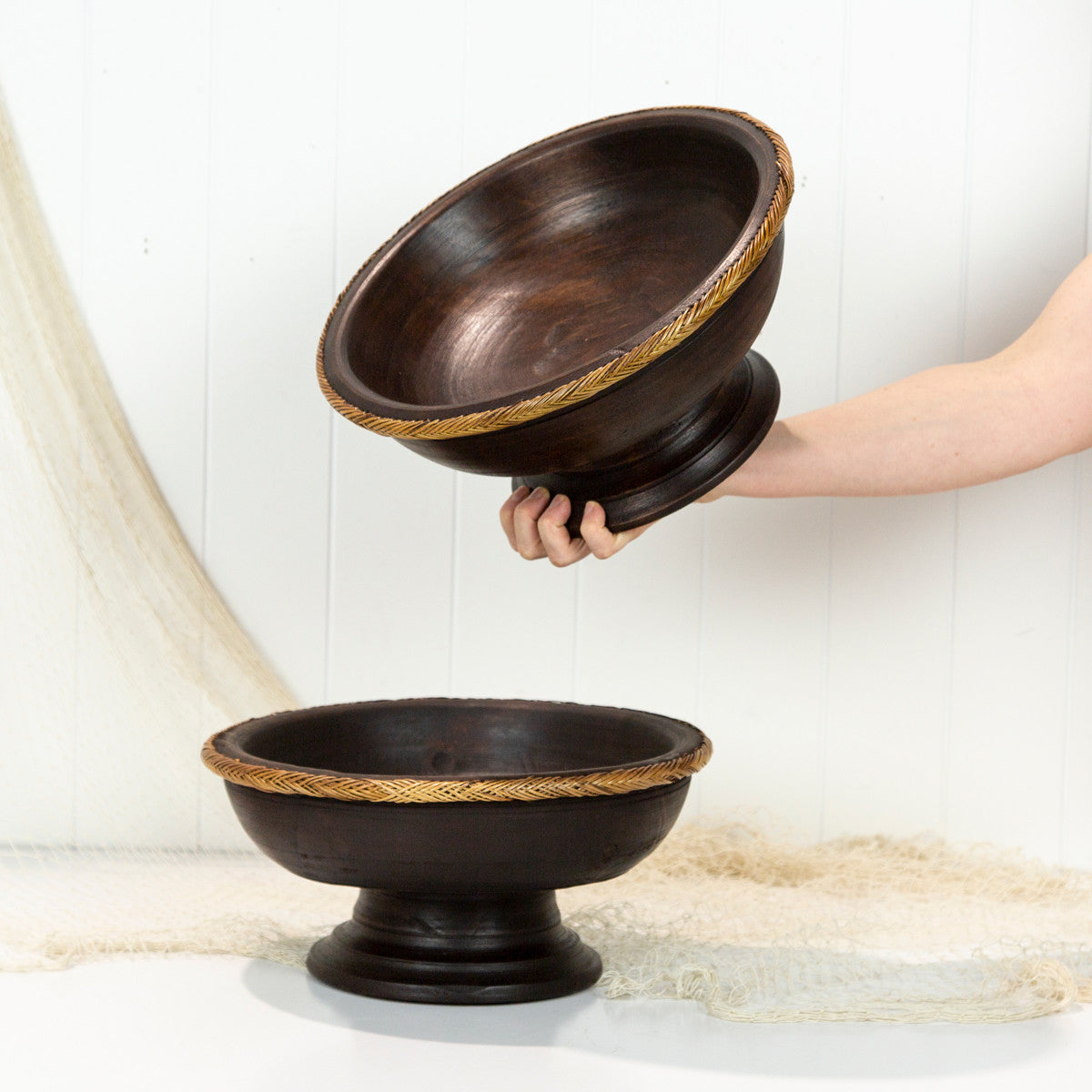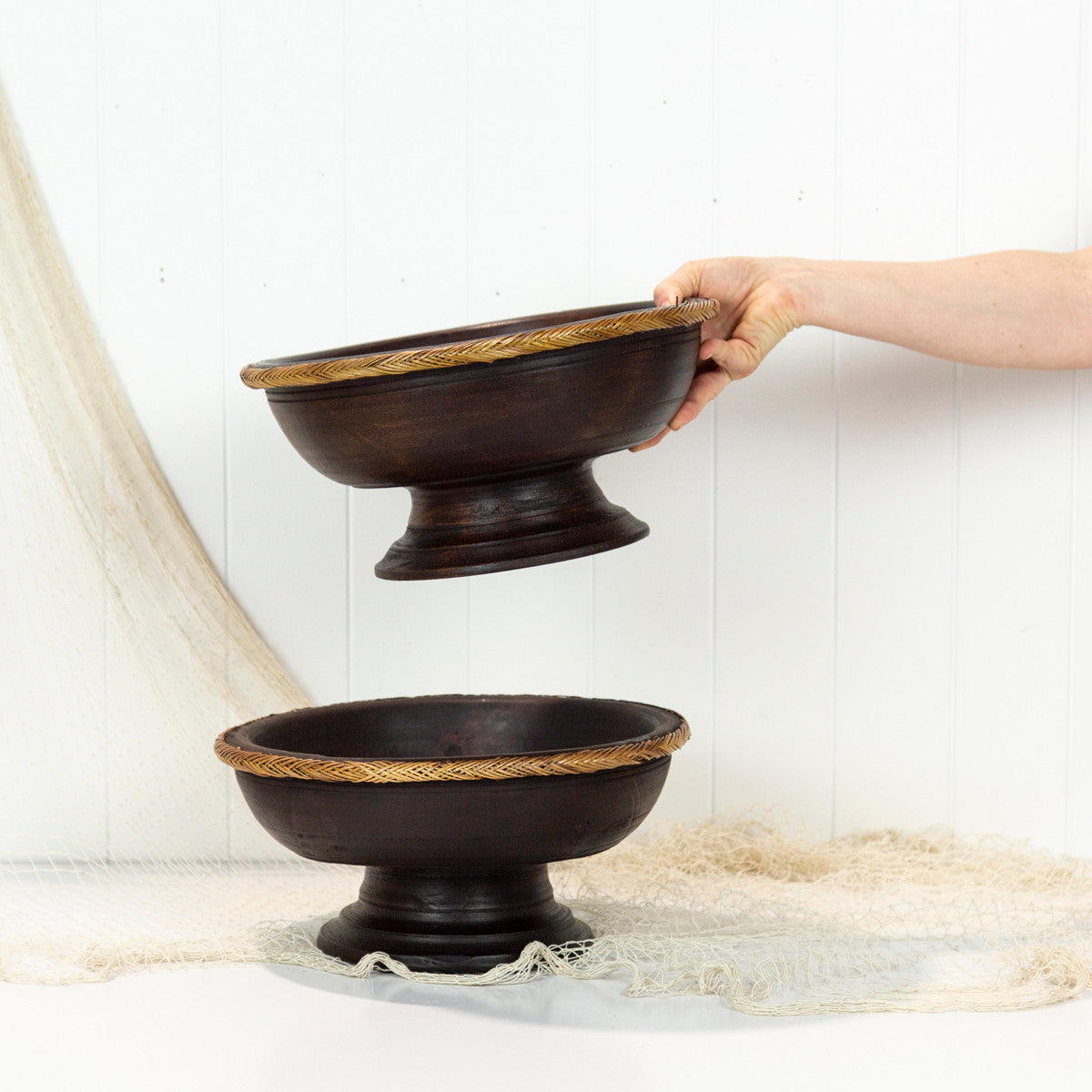 These beautiful fruit bowl/stands with woven edge are perfect to display in the kitchen with fruit or on the coffee table with a collection of shells.