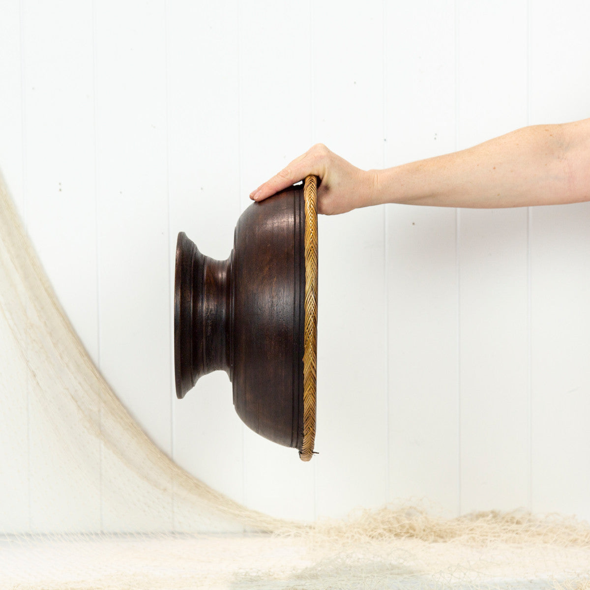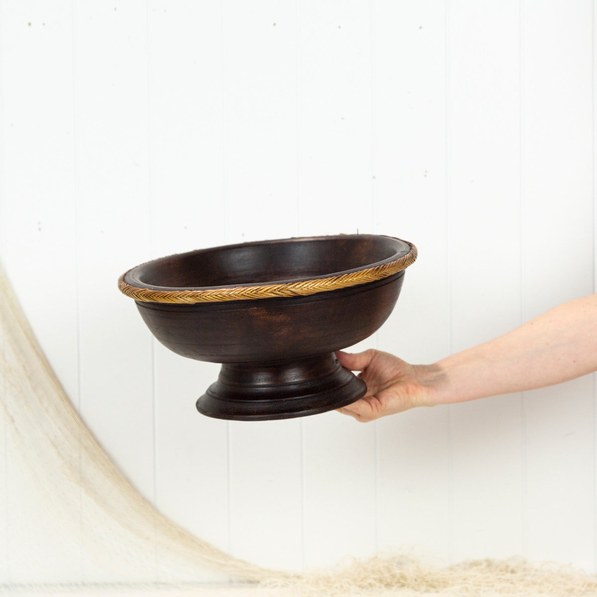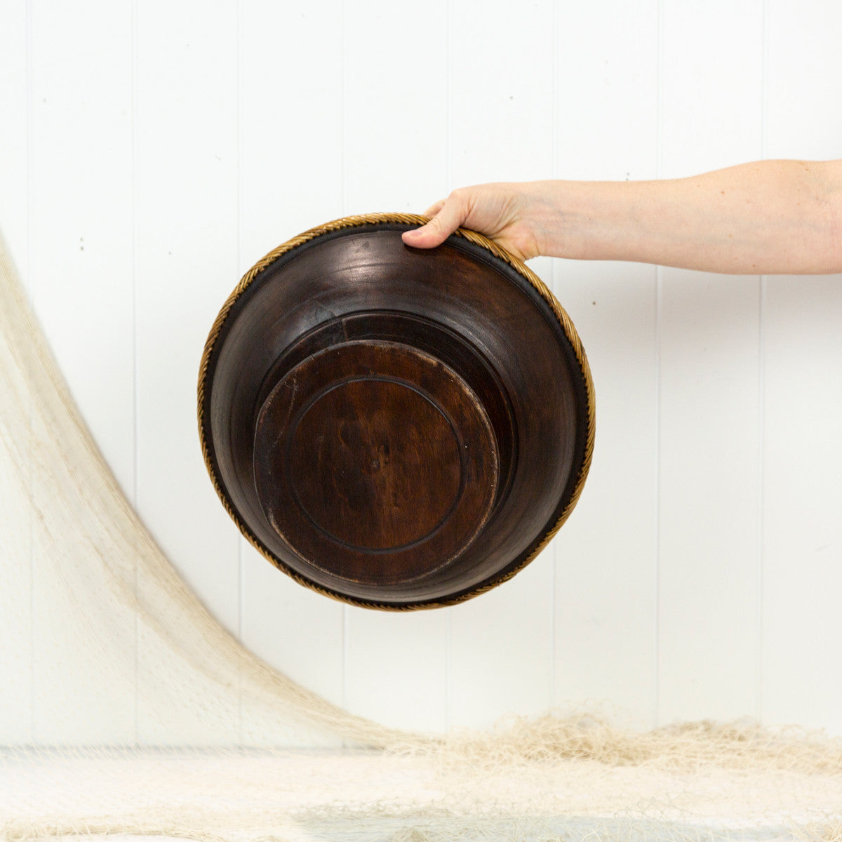 These beautiful fruit bowl/stands with woven edge are perfect to display in the kitchen with fruit or on the coffee table with a collection of shells.