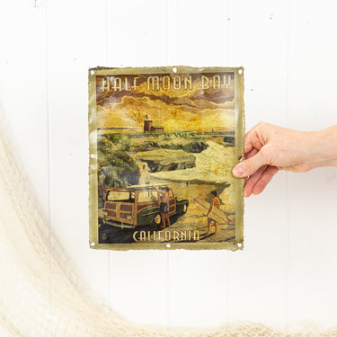 This wonderful retro wall piece has been created by printing an image onto metal.