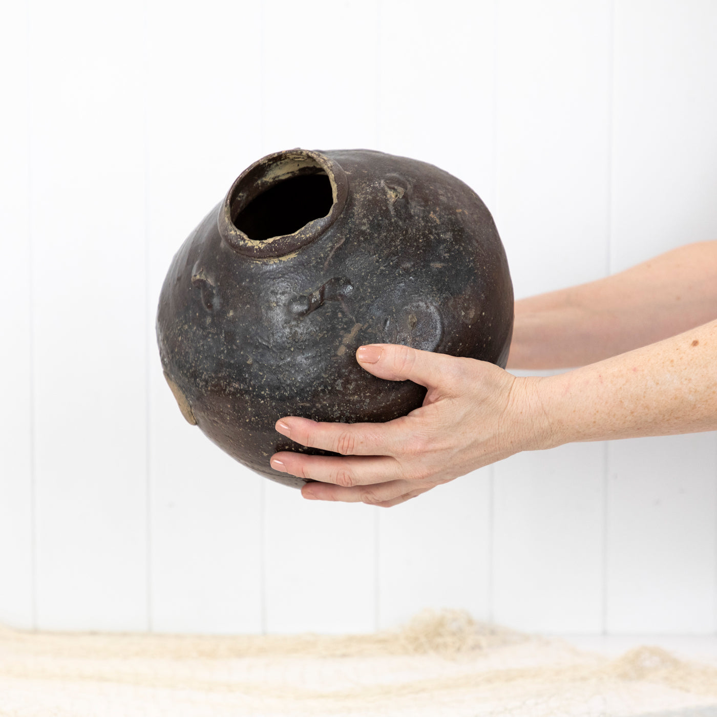 Beautifully textured, with a deep brown glaze and bulb shape it would be perfect for styling a contemporary or vintage style space.