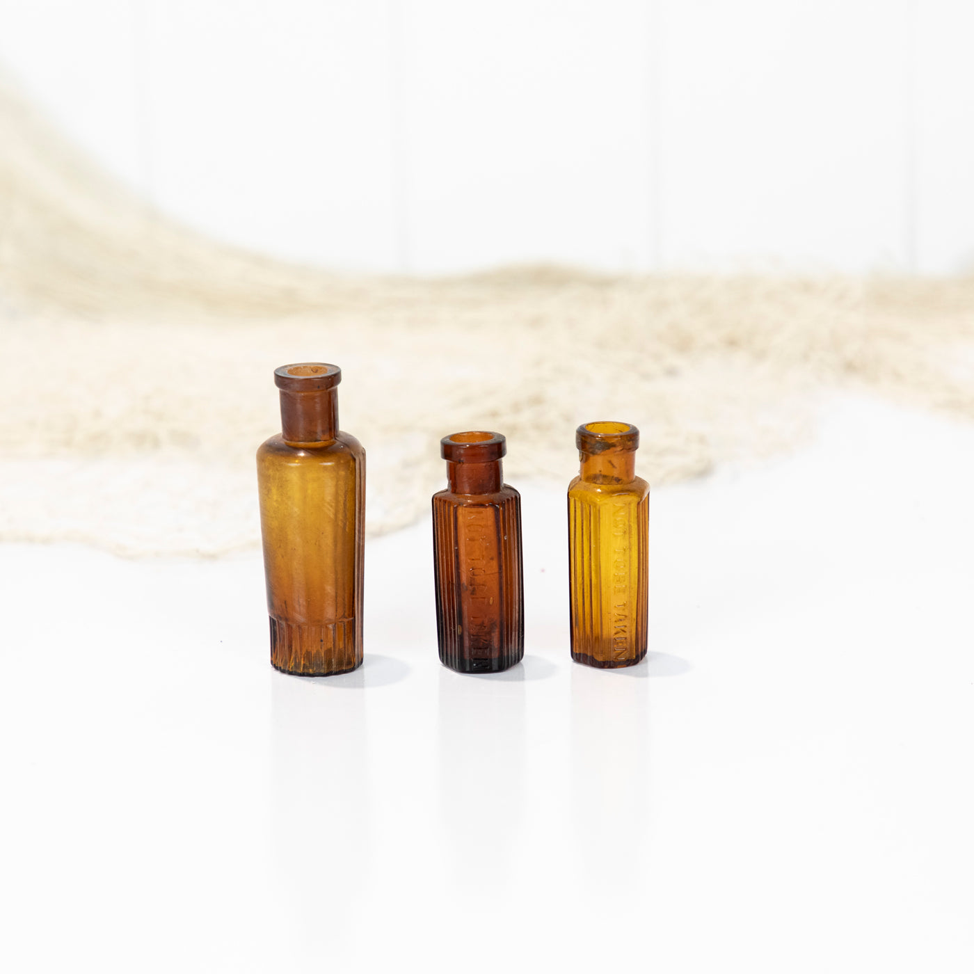 This trio of tiny amber poison bottles is sold as a set.